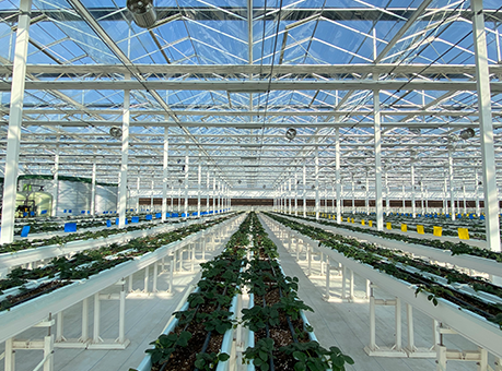 华维农装研究院于2021年推出了第二代草莓天瀑,采用一体化轧制成 型的金属材质种植槽,可根据场地大小现场轧制,安装方便快捷,种 植槽中间无拼接,从根源上解决常规种植槽密封不严而漏水的问题, 同时钢结构种植槽具有重量较轻,对温室骨架承重要求低的优点。
