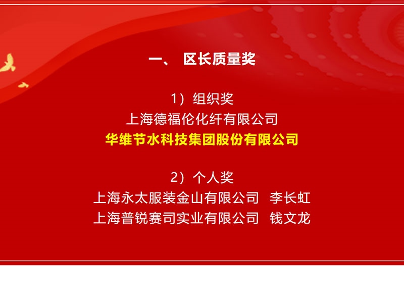 华维获评金山区第八届区长质量奖