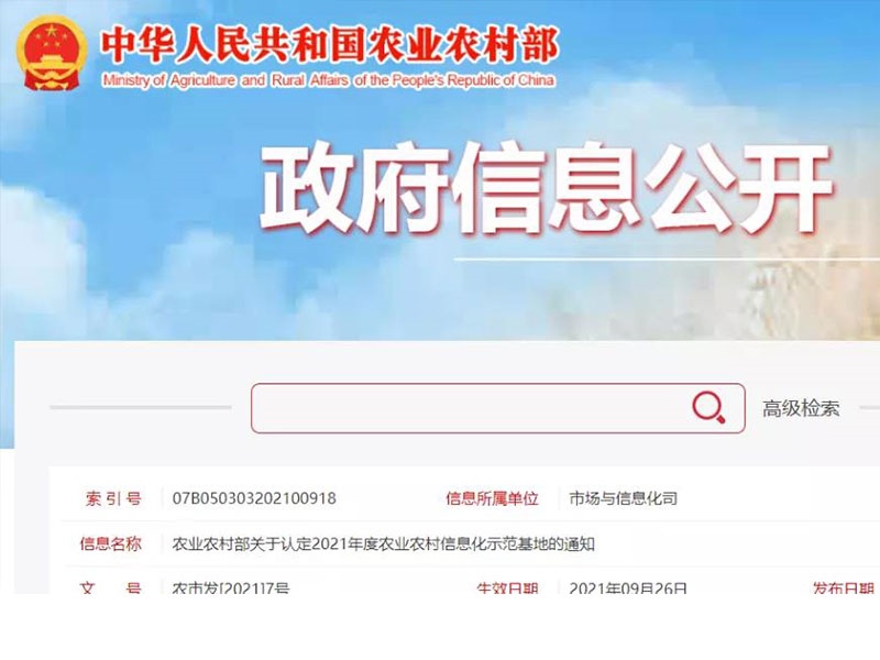 华维入选2021年度农业农村信息化示范基地