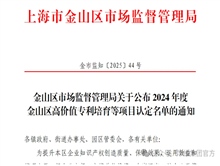 近日,金山区市场监督管理局公布了“2024年度金山区高价值专利培育等项目名单”,华维集团通过认定。此前,华维已获得“国家知识产权优势企业、上海市中小企业高价值专利产业化示范单位、上海市专利工作示范企业、上海市专利工作试点企业、上海知识产权创...