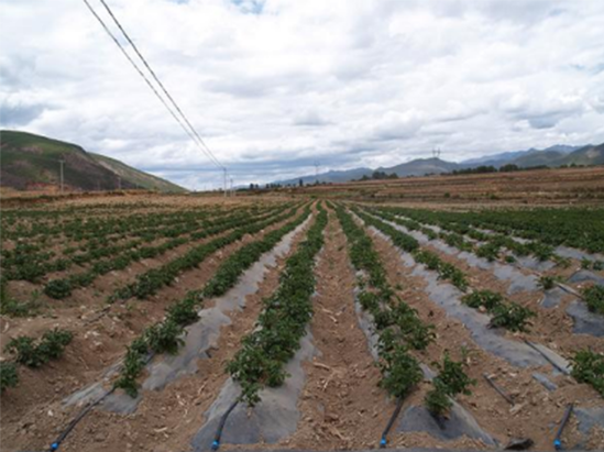 马铃薯属于浅根性作物,根系大多分布在土壤表层下40cm。早熟品种的 根系一般不如晚熟品种根系发达,且早熟品种根系分布较浅,晚熟品种分 布广而深。马铃薯需水量较多,在生长过程中供水不能间断,必须供给足 够的水分才能高产。特别是在块茎形成和块茎增长阶段,要连续保持土壤 湿润状态,一旦缺水就容易形成块茎畸形、品质降低、严重减产等,所以, 马铃薯高效灌溉势在必行。而传统的灌溉方式“大水漫灌”方式落后,水分 渠道渗漏严重,水分利用率低下,不利于马铃薯的成长。马铃薯的灌溉要 求灌水均匀、用水要省、进度要快。