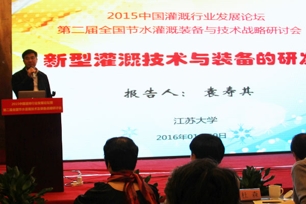 江苏大学校长袁寿其作了《新型灌溉技术与装备的研发》的主题报告。袁校长提出高效精准的灌溉装备是实施节水灌溉的关键,江苏大学开展农业节水装备共性技术与重大产品的研发,与多家科研院所和企事业单位合作,积极推动行业的科技进步。 江苏大学校长 袁寿其