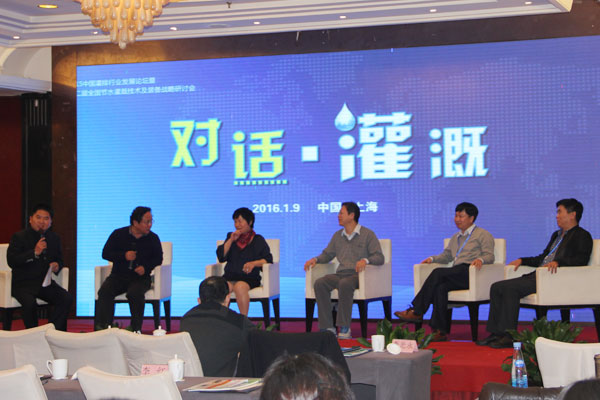 武汉大学罗金耀教授的《关于我国小型农田水利工程建设若干问题的思考及有关微灌新技术研究进展》的报告,就我国大型灌区建设、小型农田水利与规模化节水建设进行了阐述,提出要充分利用各地已有的灌溉试验站加大对作物需水量的观测研究,更好地实现稳产高产。 中国农业大学李光永教授分析了《微灌: 现状需求与挑战》。李光永教授表示,微灌产品目前依然面临创新灌水器结构、改进制造技术、提升过滤效率和开发自动化、信息化系统等众多挑战。 华南农业大学张承林教授作了《国内外水肥一体化技术的发展现状》的主题报告。张教授表示,水肥一体化技术主要适用于经济果树和设施农业,主张使用水溶性肥料、注肥泵等提高施肥效率,并指出肥料企业应根据不同地区、作物的需肥特性,迎合市场的需求,携手灌溉企业制定合理的施肥方案,帮助用户真正实现作物提质增产。 北京美林地景董事长周荣、上海华维节水灌溉股份有限公司董事长吕名礼、北京湖人灌溉副总经理吕露、新疆惠利灌溉门旗博士、大禹节水董事长王栋,分别就《机械化喷灌技术与应用》、《中国灌溉品牌自主化之路》、《灌溉自动化控制设备种类及应用》、《地下滴灌技术应用与进展》和《地埋式滴灌技术及其应用》作主题报告。 有别于众多先进技术的分享,吕名礼董事长从一个灌溉人的角度,同大家一起回首了灰色的“洋”货岁月,分析了国内灌溉市场长期依赖进口的挨宰囧境,总结了当前困顿受囧的主观症结,倡导大家理性地看待国货与进口产品,主张国内的灌溉企业打造优质自主品牌,努力践行“好产品,中国造”,走出一条扬眉吐气的国产化之路,重建国人对“中国制造”的信任。吕名礼认为企业可以没有国界、但企业家是有国界的,购买国货是一种具体的爱国行为。这一触动且鼓舞人心的精彩报告时时获得在场嘉宾雷鸣般的掌声。 《对话·灌溉》主持人 上海华维董事长吕名礼(左一)