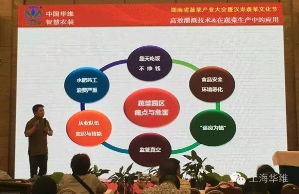 吕名礼应邀所作的《高效灌溉技术及其在蔬菜生产中的应用》主题演讲,针对蔬菜园区传统生产管理中的痛点和危害,对水肥一体化、农业物联网等这种集灌溉、施肥、生产管理等多种功能于一身的高效智慧农业模式进行了详细讲解,以实际案例和赤裸裸的经济投入产出的纵横对比阐释了高效灌溉系统在蔬菜生产中带来的“节肥、节水、节药、省工、省电、省心、增产、增收、增效、低碳环保”等一系列巨大的经济效益和社会效益,引发了代表们强烈的反响和共鸣,赢得了现场专家们的高度肯定和一致喝彩,广受赞誉。