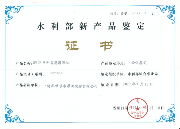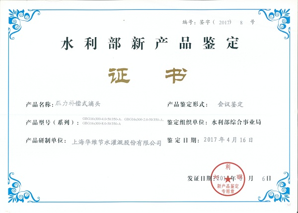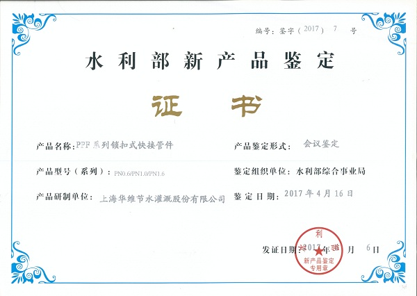 水利部综合事业局组织有关专家就华维申报的“智慧灌溉机、压力补偿滴头、锁扣式快接管件”等三个产品进行了鉴定。