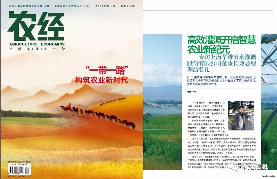 《农经》杂志,由中华人民共和国科技部主管,中国农村科技开发中心主办。是一本定位于国内外农业产业领域的高端杂志,以解决中国农业重大问题为使命,是中国“大农业”产业领袖群体的必读刊物。本篇专访刊载于2017年第12期(总第319期),P81-84,撰稿记者:张莹莹。
