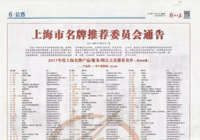 2018新年伊始,上海市工商行政管理局传来喜报:经上海市名牌推荐委员会预审,及组织的专业评审、综合评审、网上公示、最终审定,“华维”成功入选2017年度“上海名牌”。(2017年12月31日,《解放日报》06、07、08版刊登了上海名牌推荐委员会通告,对2017年上海名牌产品/服务/明日之星推荐名单进行公示。)