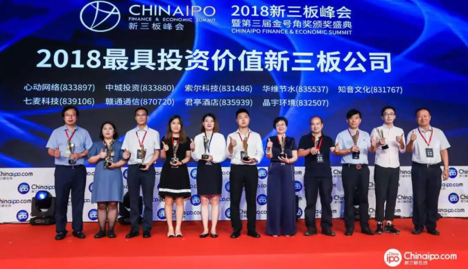 在此次峰会上,“第三届金号角奖”隆重颁出十大新三板行业奖项。华维节水等9家企业荣获“2018最具投资价值新三板公司”。