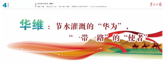2017年成功中标世界最大单体的智慧温室灌溉项目,开创了中国智慧灌溉装备走向“一带一路”的先河。被中国三农第一报《农民日报》誉为“节水灌溉的‘华为’、‘一带一路’的使者”。
