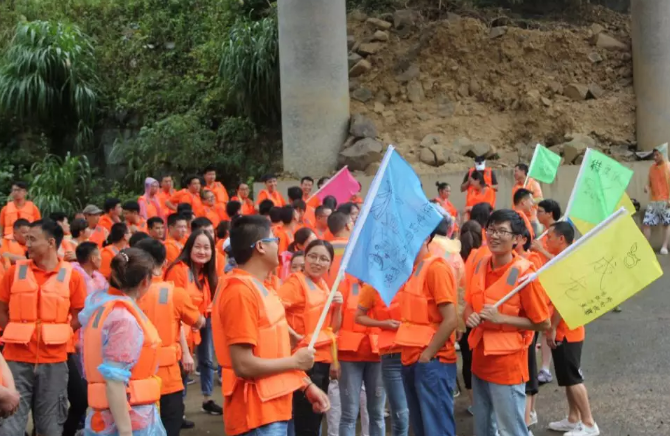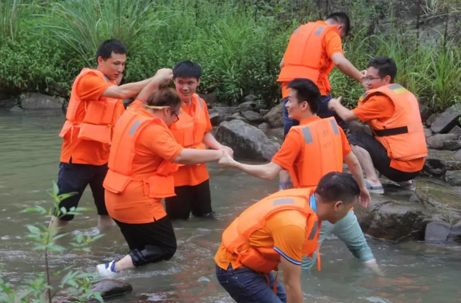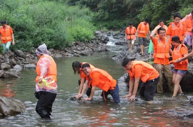 随后,以队为单位,浩浩荡荡的华维大军开始了溯溪之行。