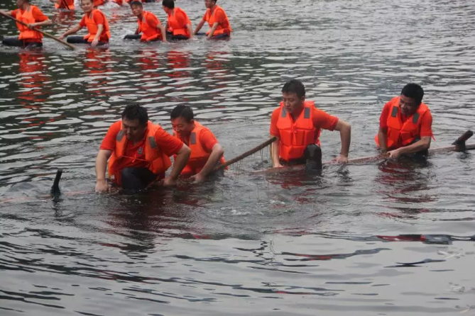 木筏横渡,各队已蓄势待发。