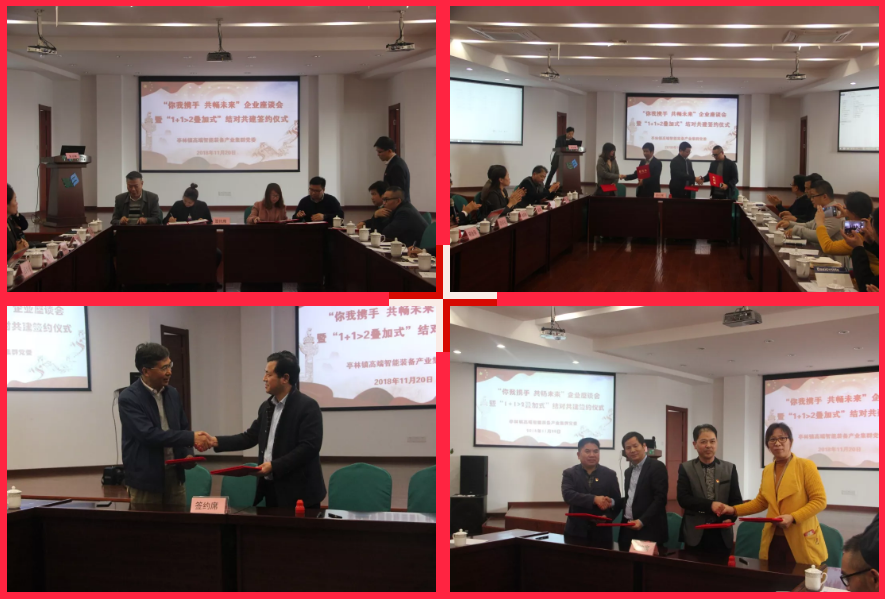 11月20日,亭林镇高端智能装备产业集群委员会首次活动——“你我携手,共畅未来”企业座谈会暨“1+1>2叠加式”结对共建签约仪式在华维节水科技集团股份有限公司(下简称华维集团)举行。镇党委副书记、综合工作党委书记陈军林,区社工委委员、社建办副主任陶海英,集群党委成员出席本次活动,活动由集群党委书记、华维集团董事长吕名礼主持。