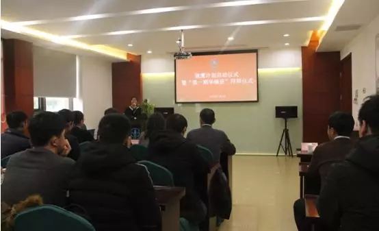 2019年1月3日下午,华维节水科技集团股份有限公司(下简称华维)与上海农林职业技术学院(下简称农林学院)就教育部现代学徒制进行校企合作的“雏鹰计划启动仪式暨第一期'华维班'拜师仪式”在华维本部举行。华维行政中心负责人顾志明、中国第一家灌溉博物馆馆长苗秋实,农林学院农信系书记袁少英、副主任周燕华,设施专业主任赵文旻,以及学徒制班全体师徒出席。仪式由苗秋实主持。