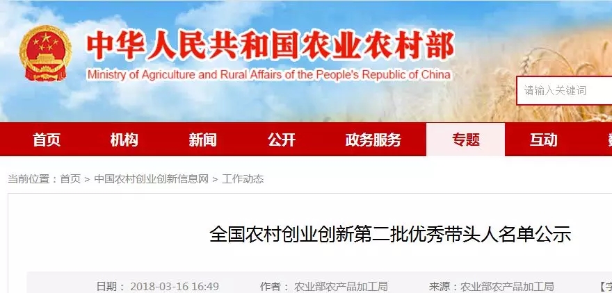 全国农村创业创新优秀带头人