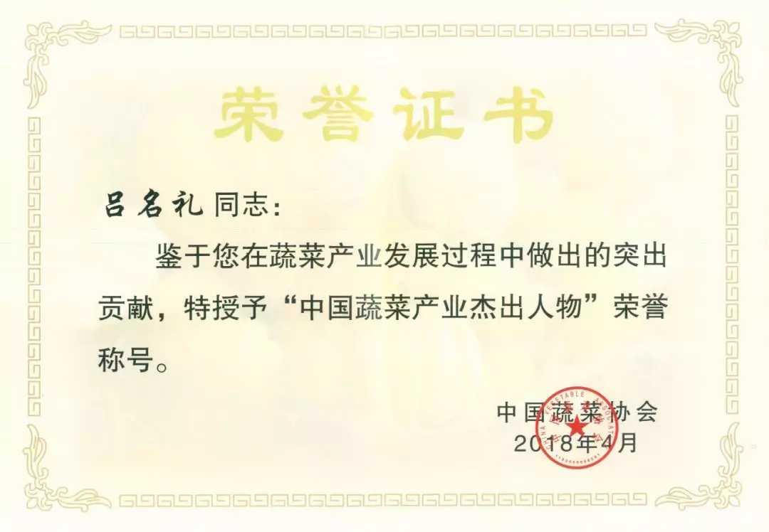首届中国蔬菜产业杰出人物