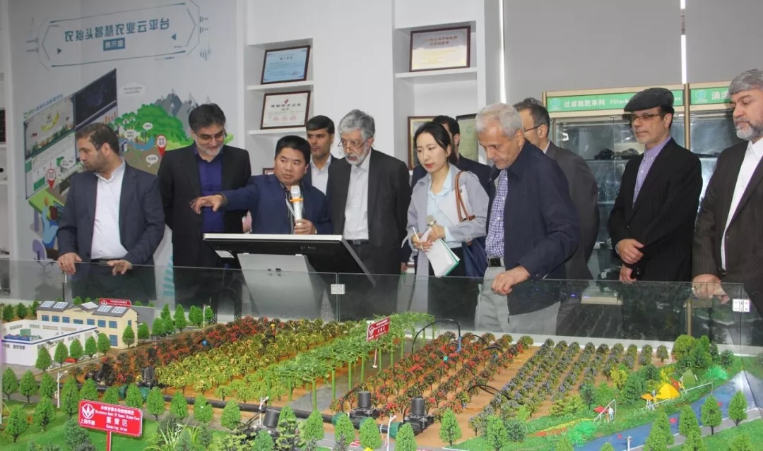 在高效水肥一体化灌溉系统、田园综合体智慧农业沙盘、农抬头智慧云平台、水务通智慧云平台等智慧农业装备技术、农业水利物联网技术的展示演示后,考察团一行针对伊朗农业灌溉现状,高效灌溉的成本投入、经济产出,栽培模式、盐碱地土壤修复等相关方面进行了交流沟通。