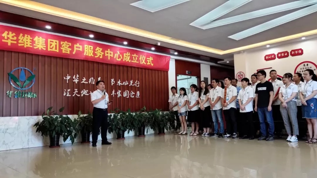 2019年8月1日,中国人民解放军建军92周年之际,华维集团在上海总部举行了客户服务中心成立仪式。作为国内唯一一家建有自主研发体系、成套产品体系和综合服务体系的中国智慧灌溉、智慧温室等农业装备自主品牌企业,华维集团再次率先在业内建立全新的客户服务体系,完善“服务的最后一公里”。