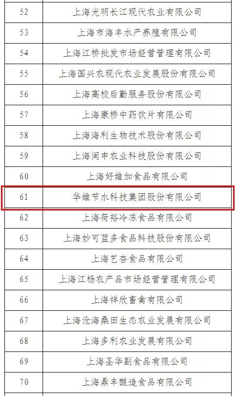 近日,华维凭藉在智慧灌溉、设施农业装备技术等智慧农业综合服务方面的突出成绩,入选农业产业化上海市重点龙头企业名单(序号61)。
