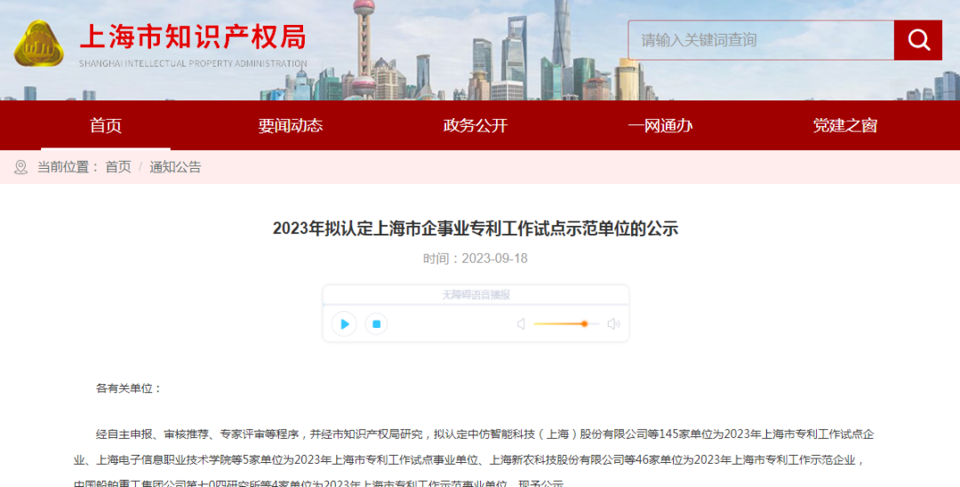 经自主申报、审核推荐、专家评审等程序,并经上海市市知识产权局研究,华维集团入列2023年“上海市专利工作示范企业”。
