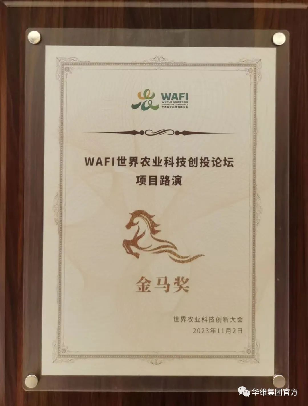 11月3日,WAFI世界农业科技创投论坛优秀路演项目颁奖仪式在北京平谷举行。华维集团突出重围,一举摘得首届WAFI世界农业科技创投论坛项目路演金马奖,证明了华维集团得到国内外投资机构、农业创投基金的高度认可。