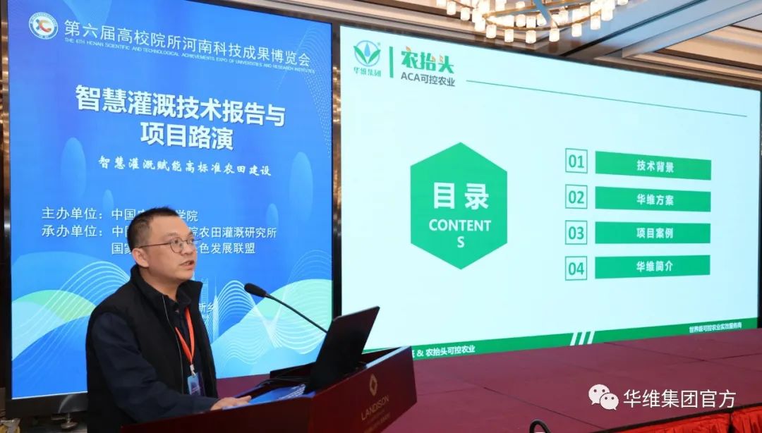 博览会期间,以“智慧灌溉赋能高标准农田建设”为主题的第二届全国智慧灌溉论坛召开。论坛上,华维集团数字农业研究所所长夏鸽飞作了题为《数字技术助力高标准农田建设》的技术报告。夏鸽飞以上海市高标准农田项目、清美5G智慧高标准农田示范项目、重庆永川智慧稻田综合管理平台等为案例,着重介绍了高标准农田建设的“华维方案”。