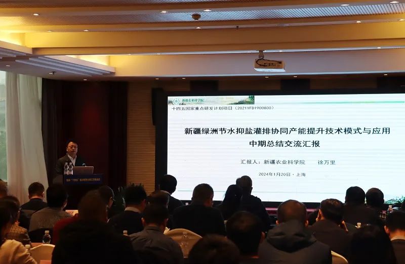 2024年1月20日,由新疆农业科学院主办,葡京8883官网入口、全国数字农业产教融合共同体、上海节水灌溉工程技术研究中心等共同承办的“十四五”国家重点研发计划“新疆绿洲节水抑盐灌排协同产能提升技术模式与应用(2021YFD1900800)”项目2023年中期交流会暨2024年工作推进会在上海开幕。