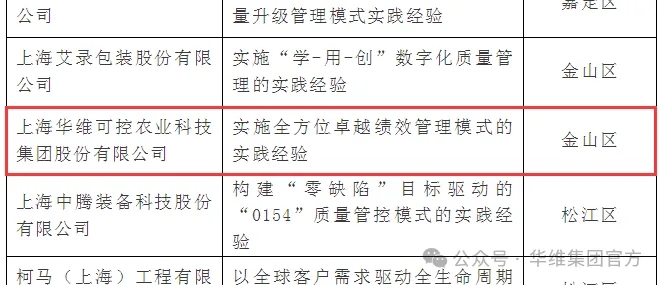 经过前期评选、公示,上海市“质量标杆”(2023-2024)名单出炉,华维光荣上榜。