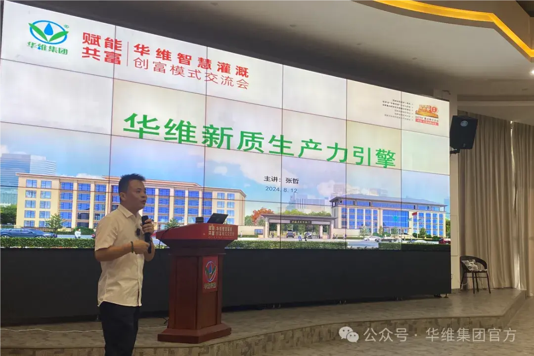 2024年8月11日,“赋能共富——华维智慧灌溉创富模式交流会”在华维农装智谷·东安谷召开。华维将二十三载灌溉实战积淀浓缩成九阳真经、创富密码,尽数分享传授通过灌溉事业实现共富的秘籍。