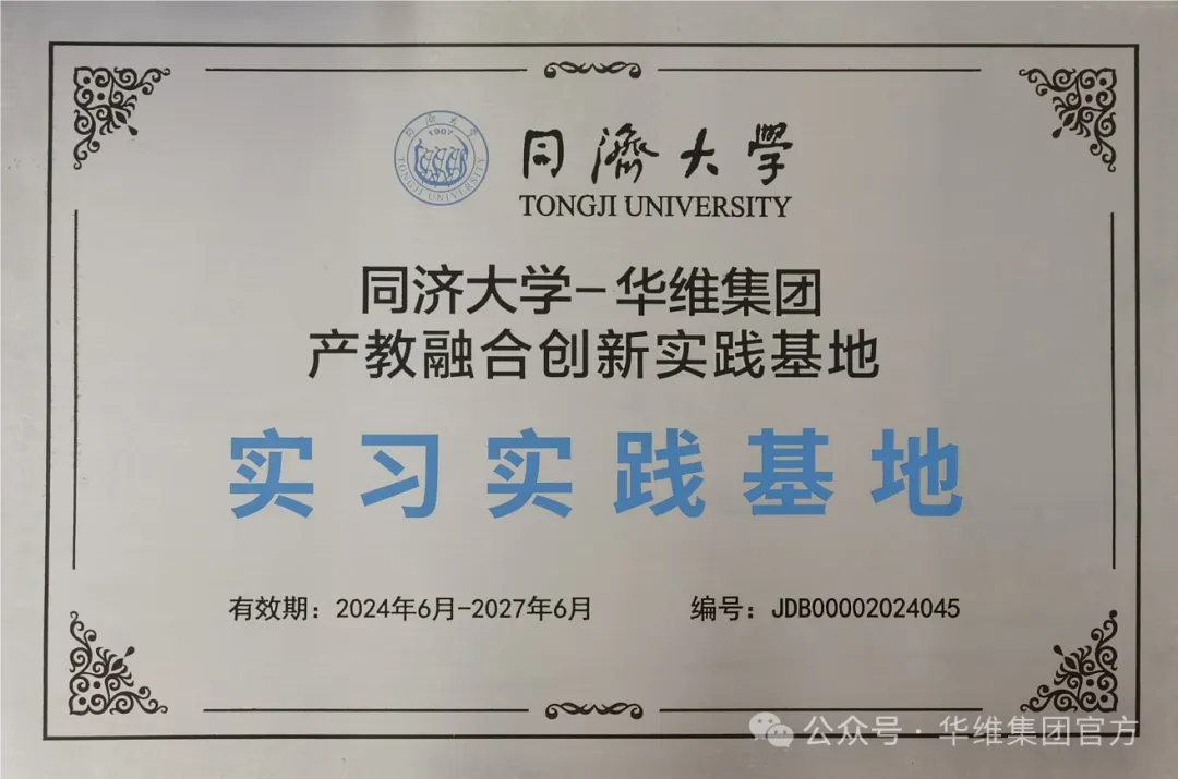产教融合、校企合作。2024年6月,“同济大学-华维集团产教融合创新实践基地”成立。