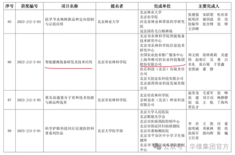 近日,北京市科学技术委员会公布了“2023年度北京市科学技术奖励”获奖情况,华维集团及董事长吕名礼双双荣获“北京市科学技术进步奖二等奖”。这是继“国家科技进步二等奖、教育部科技进步一等奖、上海市科学技术一等奖、四川省科技进步二等奖、江苏省科技进步三等奖”后,华维获得的又一科技进步类的奖项。