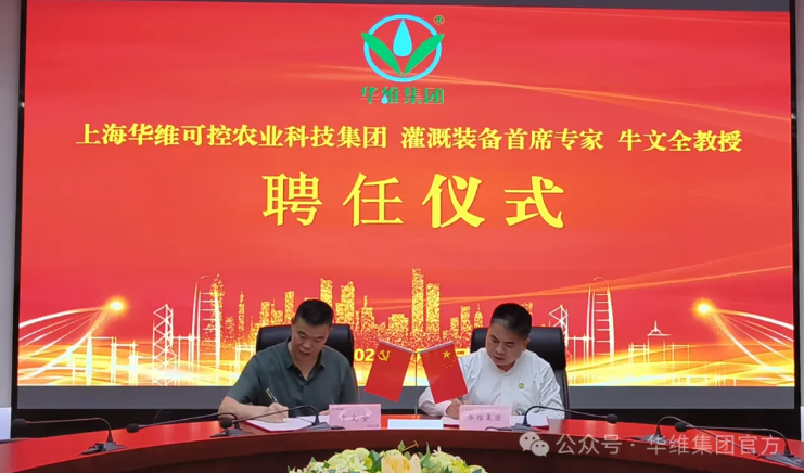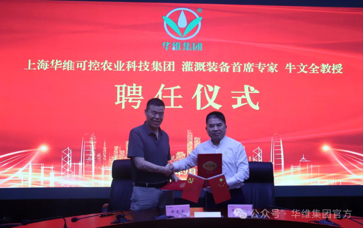 2025年9月16日,华维集团研究院聘任西北农林科技大学牛文全教授为灌溉装备首席专家。