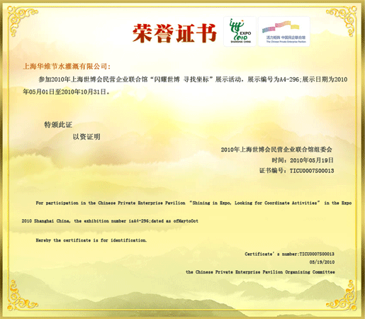 上海华维节水灌溉有限公司也积极参与此次活动,通过承办方严格审核获此百年不遇的殊荣。