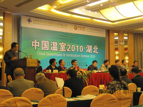 2010年11月11日,第九届中国温室园艺行业年会即“中国温室2010”在湖北省武汉市隆重召开。这次会议得到了农业部农业机械化管理司、湖北省农业厅、中国食品土畜进出口商会花卉分会、中国农业工程学会的大力支持,以及湖北省农机化办公室、湖北省蔬菜办公室、湖北省农科院蔬菜研究所、华中农业大学园艺林学学院、湖北省农业机械学会等单位的大力协助,上海华维节水灌溉有限公司也有幸参加了这一次盛会。