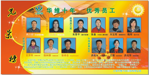 为了弘扬华维企业精神、表彰在华维成长历程中兢兢业业的优秀华维人,经过全体员工的积极参与,“华维十年 · 优秀员工”系列评选活动于3月25日圆满结束。十二位员工分获五个奖项,公司号召全体华维员工向他们学习,为振兴华维而努力奋斗。