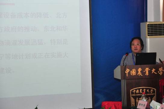 农业部全国农技推广中心节水处处长高祥照、中国农业大学水利与土木工程学院教授李光永、北京市水务局郊区水务处副处长刘春明、中国水利水电科学研究院教授李久生就节水农业、滴灌微灌技术、水肥发展等方面进行了主题演讲。近40家企业代表就会议相关话题进行了自由发言和讨论。
