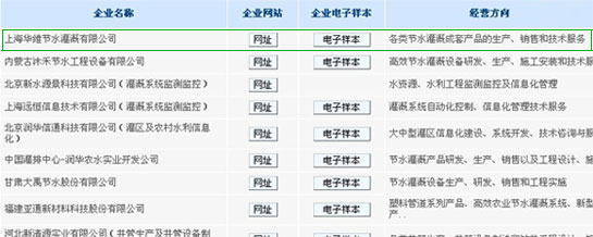 【华维 讯】2012年10月18日,中国灌溉排水发展中心网站(中国节水灌溉网)企业之窗栏目推荐了上海华维节水灌溉有限公司,包括网站和产品电子样本(http://www.jsgg.com.cn/PictureHall/0001.asp?ID=68)。入选此栏目的灌溉企业需经过灌排中心对企业生产规模、产品管理体系、荣誉资质、行业影响力等多方面综合评测才可获得推荐。