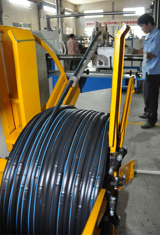 这条滴灌管生产线采用多层经纬向进胶共挤成型工艺,可确保更好的耐压性、耐候性、光洁度(可有效降低水头损失);全新滴头流道设计,全新的高速精准滴头传送技术,全新的滴头打孔技术,可以根据需要打2孔或4孔,外层颜色可以定制(比如对于使用中水的可以定制棕色外层,以提醒不能饮用),更加稳定可靠。