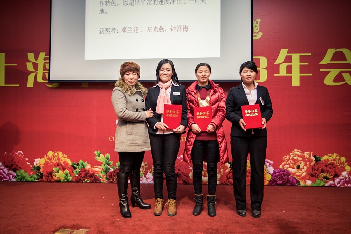 颁奖嘉宾与第四季度季度销售竞赛优胜者合影