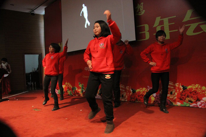 销售部的MM们把健美操带上舞台,全场一起跳动起来