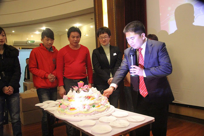 华维一家亲,董事长吕名礼先生温情为生日会切蛋糕