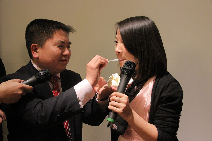 甜蜜升级,董事长吕名礼先生亲手喂众寿星蛋糕,让爱再飞一会吧