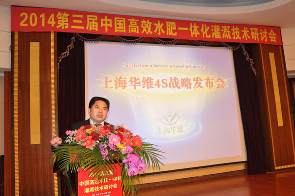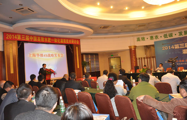 3月29日,华维在上海南郊花园饭店隆重承办了国内顶级规模的“2014第三届中国高效水肥一体化灌溉技术研讨会”,并在研讨会期间举行了“上海华维4S战略发布会”。