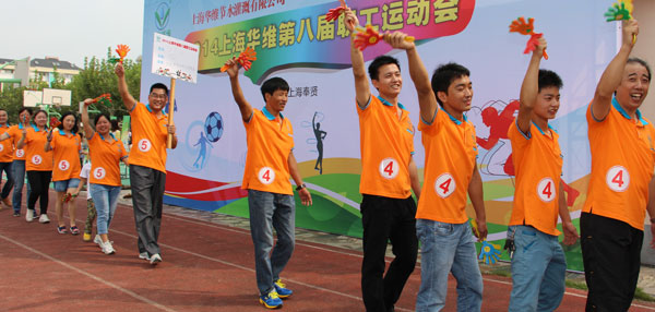 【华维 讯】2014年9月27日,上海华维节水灌溉有限公司全体员工在上海奉贤展开了一场别开生面的“2014上海华维第八届职工运动会”。华维人及华维人家属近150余人在校园里重温了美好的学生时代,在烈日骄阳下竞技协作、载歌载舞,在欢声笑语中挥洒汗水、展现自我,在团队拼搏中群策群力、情感互动。