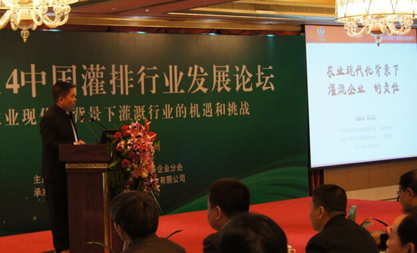 9日上午,2014中国灌排行业发展论坛”隆重召开,许复初秘书长、周荣副秘书长、吕名礼副秘书长等十位嘉宾围绕“农业现代化背景下灌溉行业的机遇和挑战”这一主题作了精彩报告。