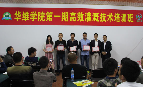 此次培训班内容包括“灌溉之道·灌溉人的责任、灌溉行业态势和华维定位、常见灌水器知识要点与应用、如何踏勘灌溉项目现场、合格与优秀的灌溉业务员、重点项目的跟踪与管理、多类型高效灌溉项目现场观摩、现场勘测示范/GPS测量工具的应用、灌溉系统常见故障判断与排除、互动答疑”等课程,书面考试,结业仪式以及毕业晚宴等活动。为了让学员把灌溉知识在实际运用中更好地与作物结合,华维学院更是特别邀请了上海市农业技术推广服务中心副主任朱恩给培训班开设了“常见经济作物水肥特性”的课程。