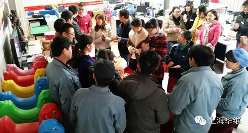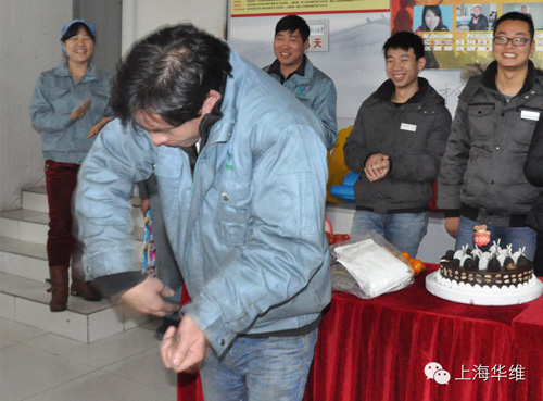 咳咳,还是从头说起。 华维每月会为当月过生日的华维人举行集体庆生会,有衣着靓丽的办公室人员,也有体现劳动光荣的车间人员,如果下面你不小心看到了他们不太清洁的衣服,请为他们点个赞,因为劳动者才是最美的人! 好了,背景交代完毕,下面上图喽!