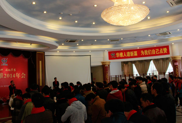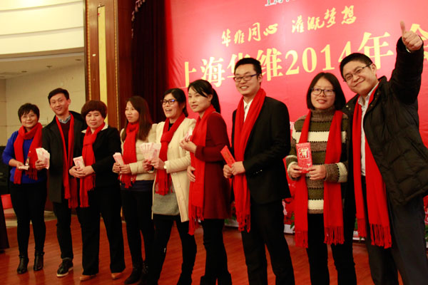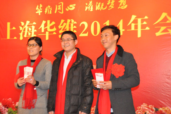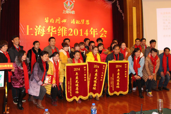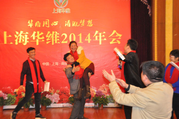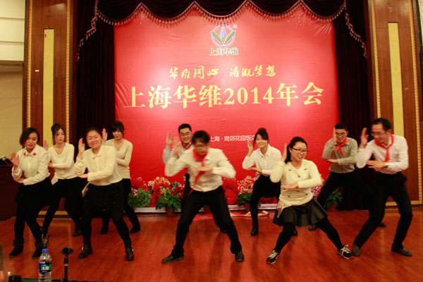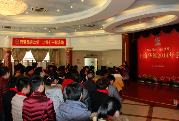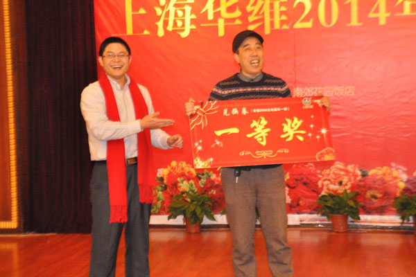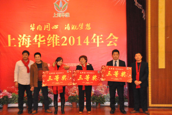 【华维 讯】营销拓展挂云帆,表彰才艺皆点赞。抽奖斗酒庆生会,晚宴狂欢聚笑谈! 2015年1月16~17日,寒风未侵、冬阳旭暖,上海华维节水灌溉有限公司2014年年会在上海南郊花园饭店(上海千人计划创业园)隆重召开。上海总部全体人员,云南、北京、广州三个分公司部分人员,以及华维人家属代表等近160余人参会。