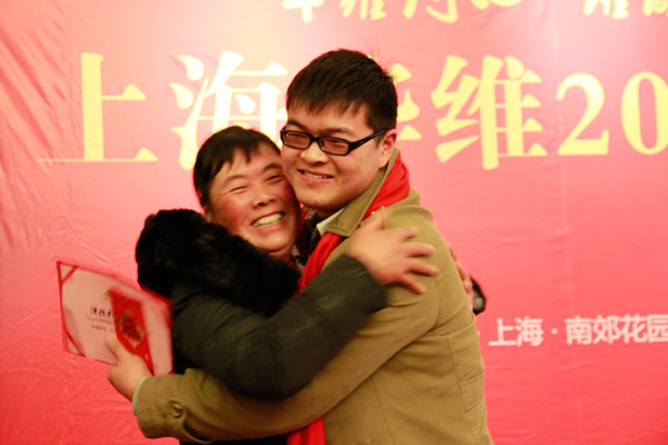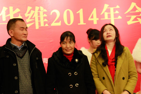 同样是被华维远道邀请而来的神秘颁奖嘉宾,但这个妹子(右)见到父母(左)后瞬间就泪奔了,进而带动了现场许多小伙伴也跟着情不自禁了,一种叫亲情的东西触动了我们心底最柔软的角落。感动?惊喜?还是幸福?管它是什么呢,此情此景,华维觉得所做的一切都值得了!