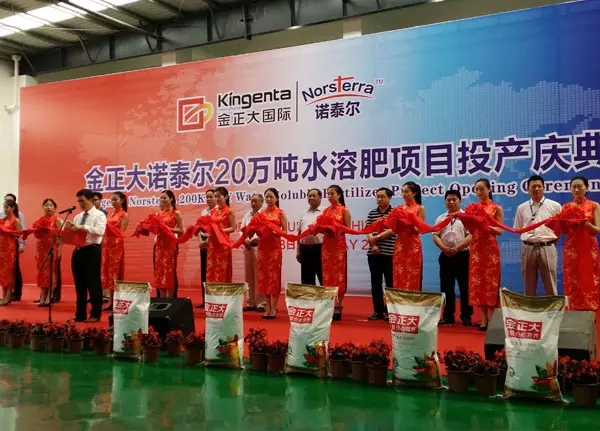坐落于贵州省瓮安县工业园区的诺泰尔水溶肥项目,建设总投资59.6亿元,是目前中国单体投资、规模最大的水溶肥项目。项目按照“高起点规划、高水平设计、高标准建设”的原则,依托金正大集团众多国家级研发平台,整合全球顶尖专家资源、融汇美国、以色列、挪威等全球顶尖技术,在消化吸收的基础上,在关键生产工艺技术实现突破,使得我国首次拥有了世界级品质的水溶肥。此项目投产标志着我国水溶肥真正的实现了规模化发展,同时对我国水肥一体化技术推广具有划时代意义。