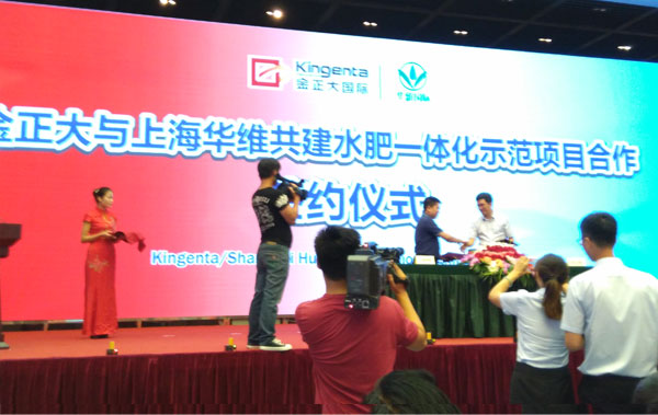 作为“金正大赠送10万套滴灌设备”活动的合作伙伴、中国经济作物高效水肥一体化灌溉领域的自主知名品牌,上海华维应邀参会与金正大举行了“金正大与上海华维共建水肥一体化示范项目合作签约仪式”。